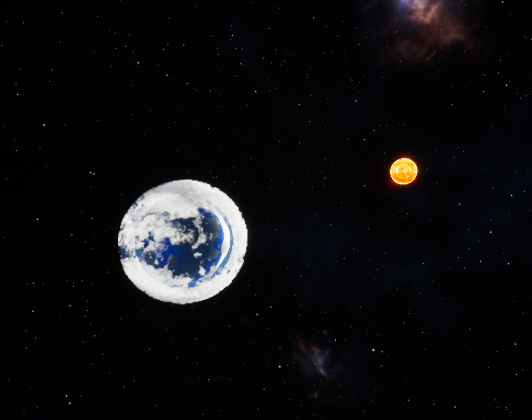 Developed an early gameplay framework featuring a controllable character and flyable spaceship, enabling seamless transitions from deep space to planetary surface.